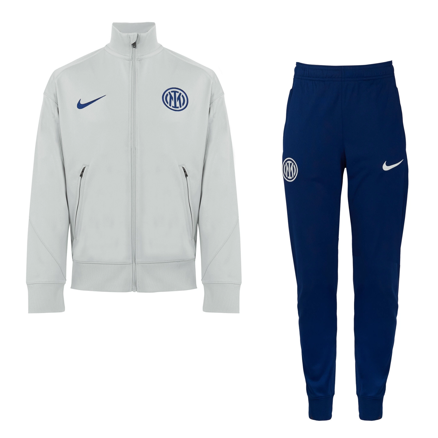 The INTER training tracksuit boasts design features specially tailored to football's rising stars. The casual, relaxed fit pairs well with breathable fabric that keeps you cool so you can hone your skills with maximum concentration. Nike Dri-FIT technology wicks sweat away from your skin for quicker evaporation, helping you to stay dry and comfortable. Zip pockets mean you can keep your essentials safe. Lower leg zips allow you to change quickly without taking off your shoes. Elasticated neck and cuffs.