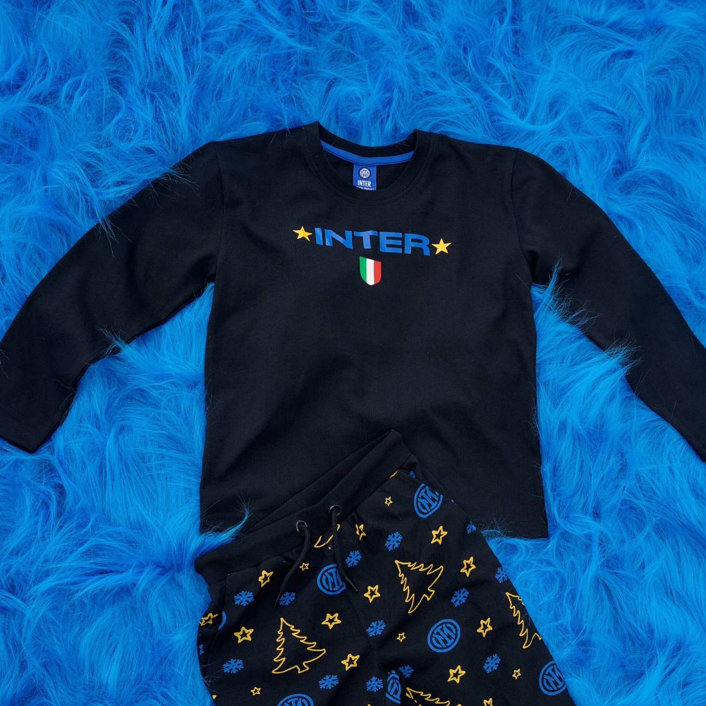 The INTER Happy Winter pyjamas are the perfect gift for young Nerazzurri fans. Made from soft cotton, they feature a design in black, blue, and yellow that reflects the club's identity. Regular fit.