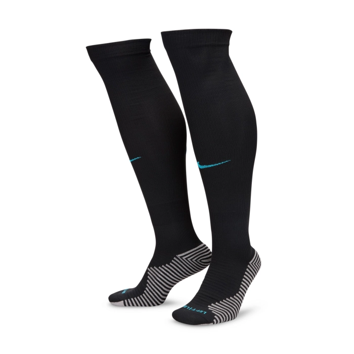 The INTER Home socks offer breathable fabric to keep your feet dry, while strategically placed cushioning keeps you moving to win every ball. Nike Dri-FIT technology wicks sweat away for quicker evaporation, helping your skin to stay dry for excellent comfort. Padding in high-wear areas helps cushion your step as you run. A snug band around the arch offers great support. The socks wrap around the leg up to knee height to guarantee reliable coverage, while breathable yarns keep your skin cool so that you can remain perfectly focused as you perfect your skills.