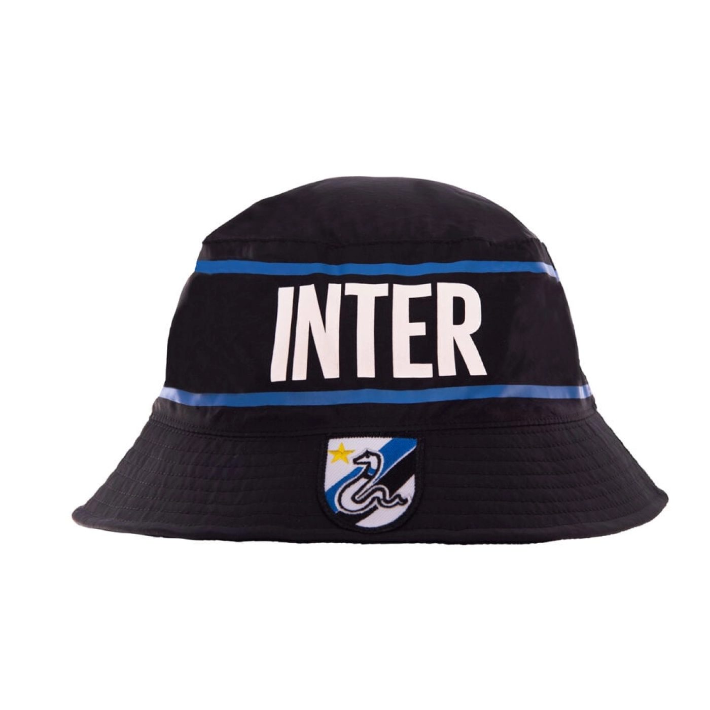 The INTER Retro Taper Fisherman Hat is made from soft and comfortable 100% polyester fabric. On the front, it features an embroidered retro club logo with the Biscione and the text INTER.