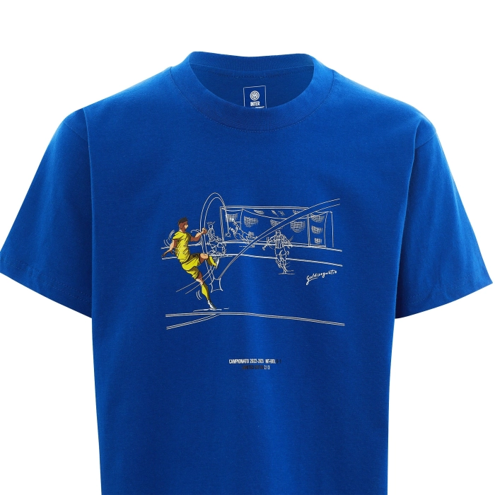 The best goals from the first half of the 2022-23 season are always with you. Wear Dzeko's goal in INTER vs Bologna on this t-shirt made of soft cotton and with a ribbed collar. Regular fit, no side seams.