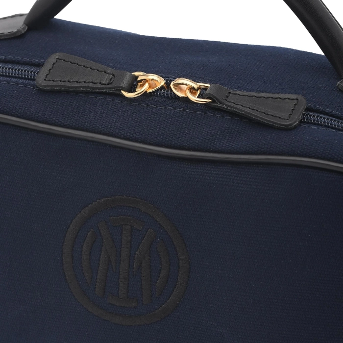 The INTER x My Style Bags Beauty Case is a versatile and iconic accessory, perfect for those wanting to travel in style. A best seller when it comes to the My Style Bags models,this elegant beauty case expresses the best of Italian design, made precious by unique details which celebrate the iconic Inter style. Made with resistant cotton, the Berkeley Beauty Case is created for travellers with an eye for details. The rigid handle and zip in hammered leather both enrich the design, while the impermeable inside with an integrated pocket guarantees maximum practicality and protection for your personal belongings.