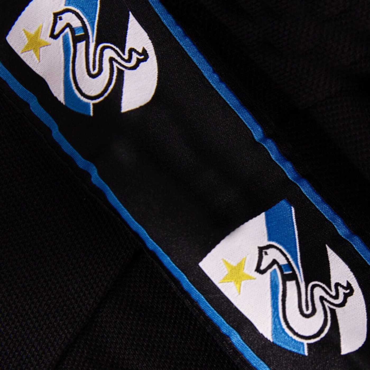 The Retro Taper Polo is made from 100% pique cotton. On the upper part of the shoulders and sleeves, there is a high-resolution woven ribbon featuring the retro Biscione emblem. The polo is finished with the retro club logo and Biscione embroidered on the chest.