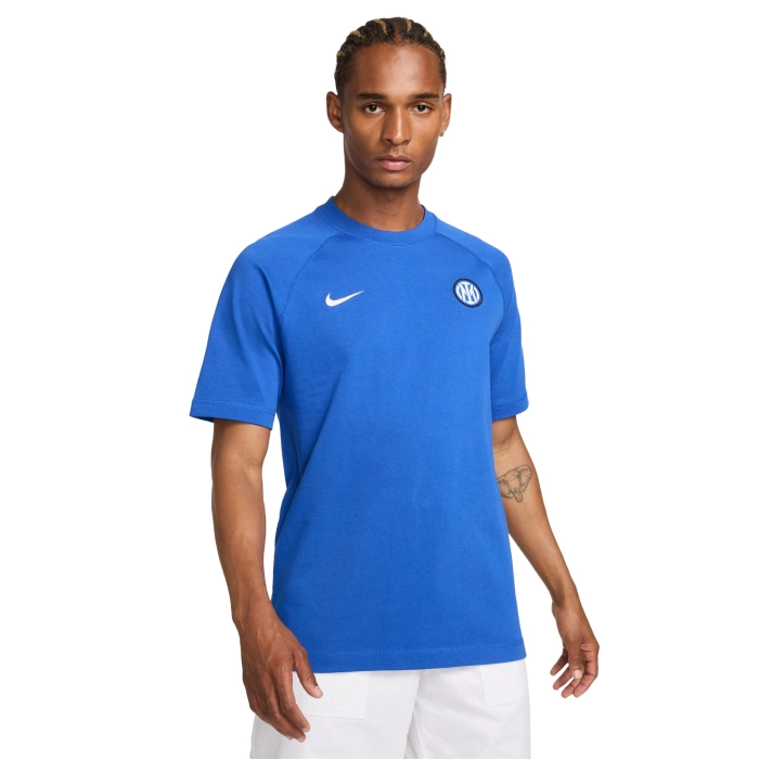 Inspired by the model worn by players off the field, the INTER travel T-shirt offers a loose fit and soft cotton fabric for an easy-to-wear look. The fabric crest on the chest highlights your passion for the team.
