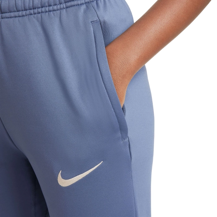 The INTER training joggers boast design features specially tailored to football's rising stars. The snug, streamlined fit won't hinder your movement, while the breathable fabric keeps you cool and in control, allowing you to perfect your skills. Nike Dri-FIT technology wicks sweat away from your skin for quicker evaporation, helping you to stay dry and comfortable. Zip side pockets mean you can store your essentials securely.