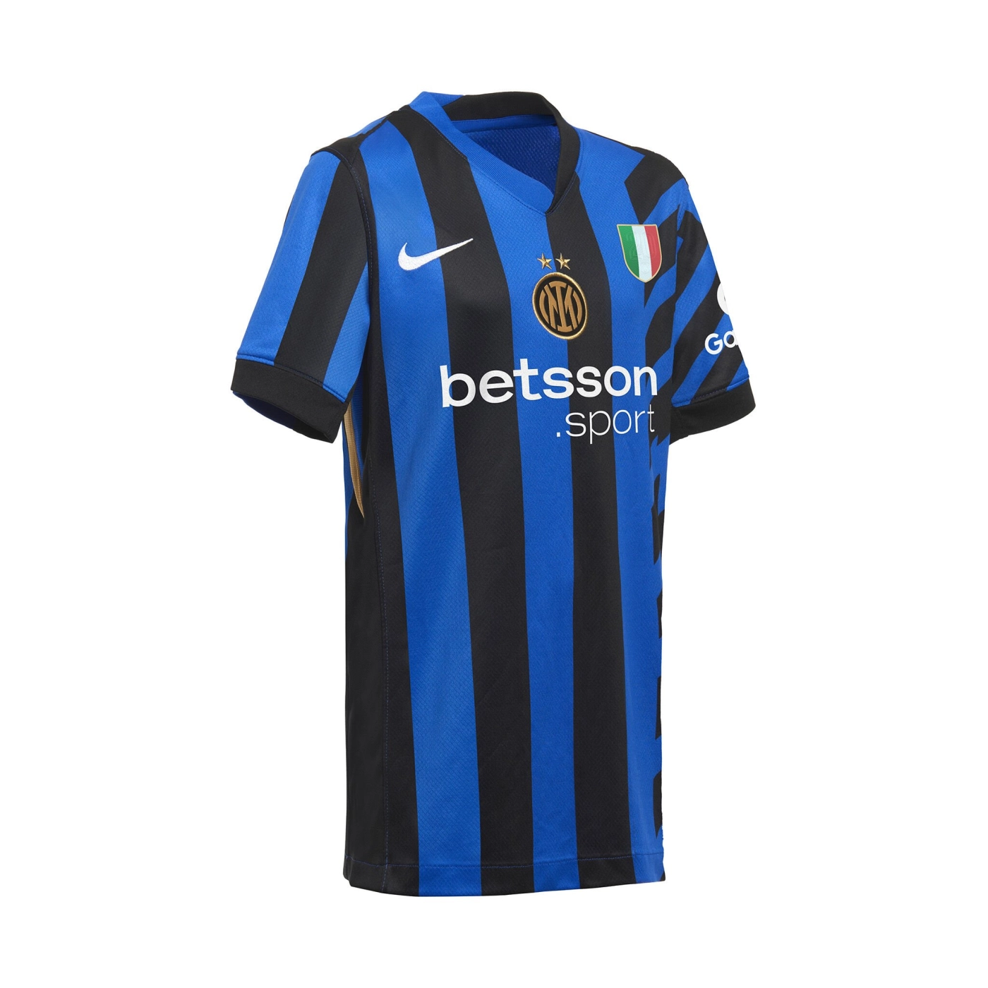 For the first time on our jersey, the second star shines above the logo of the new 2024/25 Home Kit. The Stadium collection replicates the details of the original design with breathable technology for a match look that is inspired by the appearance of the professionals on the pitch. Nike Dri-FIT technology wicks away sweat to encourage rapid evaporation and keep your skin dry for excellent comfort. The jersey is made using recycled polyester. The new Home Kit is completed with matching shorts and socks. You can customise the jersey with the name and number of your favourite player and add the Lega Serie A 2024/25 or Champions League patches on the sleeve.