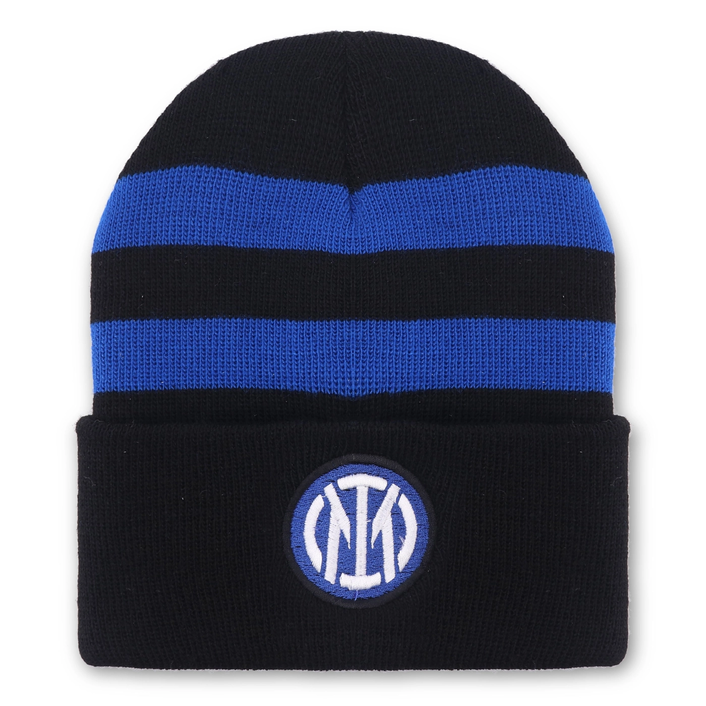 Il cappello INTER è un accessorio di tendenza. E' personalizzato con pattern a righe in contrasto colore e logo del Club.
