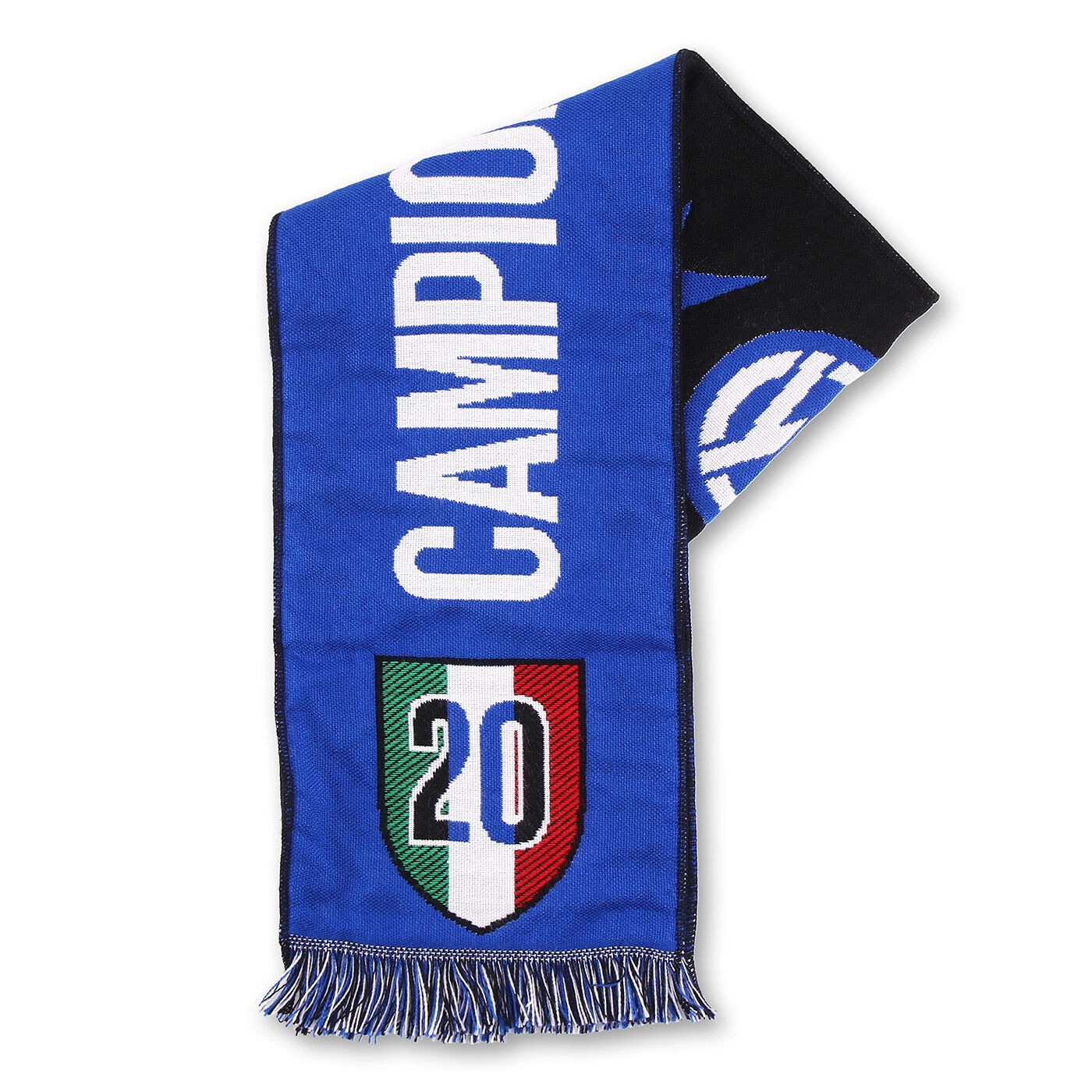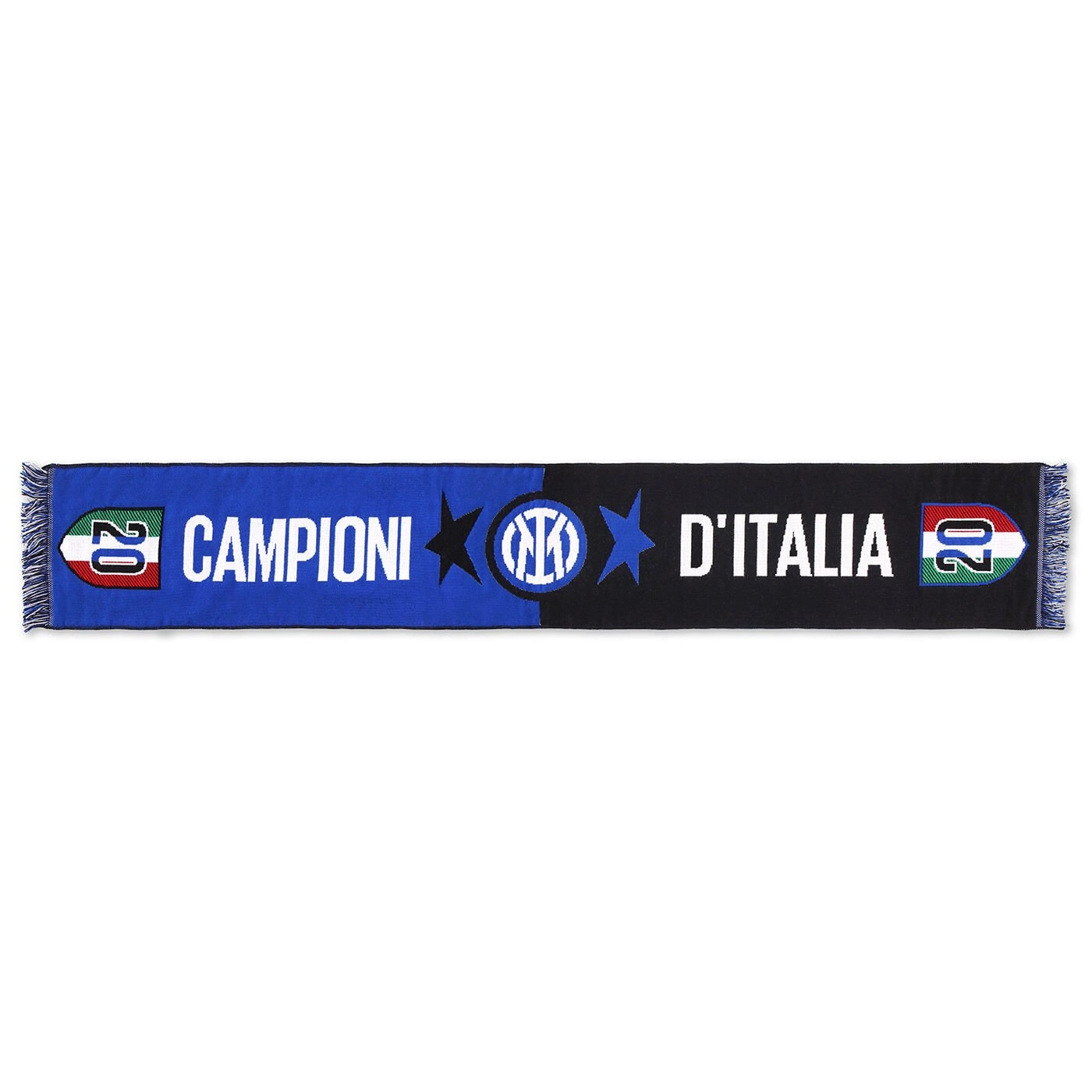Festeggia la vittoria del ventesimo scudetto e la conquista della seconda stella con la sciarpa celebrativa Campioni d'Italia.