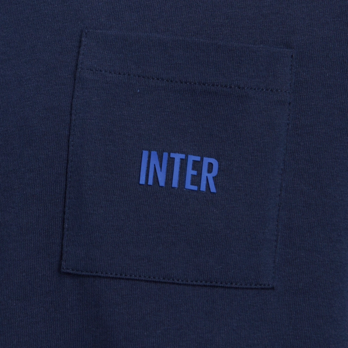 Short-sleeved INTER t-shirt with a cotton pocket and a ribbed collar. 3D rubberised print with INTER lettering on the pocket. 3D rubberised INTER logo on the back. Regular fit.