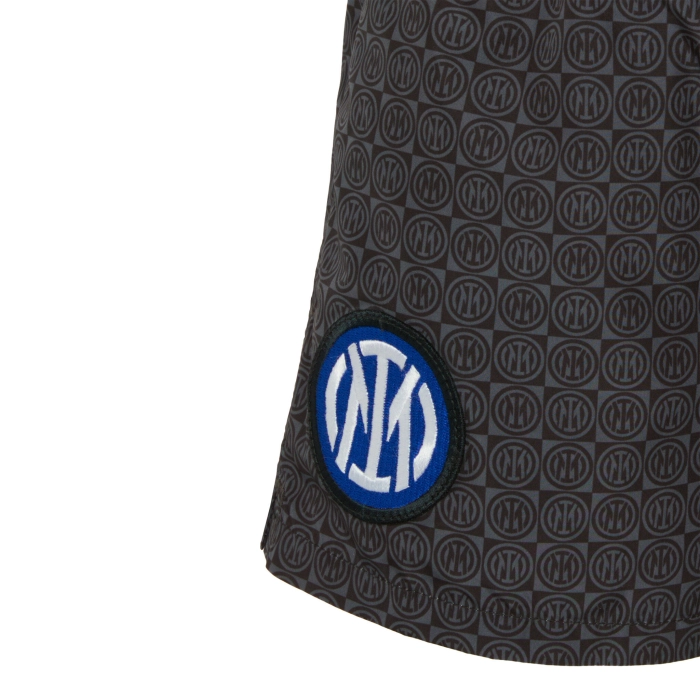 Discover the Special Collection INTER X MC2 Saint Barth. The boy's swimming shorts are made with light material that dries quickly. The elastic waistband and the drawstring ensure a comfortable fit, while the logos are specifically placed to drain water and prevent the shorts from swelling up. With french-stitched side pockets and a magnetic back pocket, these swimming trunks are both practical and fashionable. Furthermore, there is a small pocket inside the shorts to make holding coins more comfortable. Made with 100% recycled plastic, these trunks symbolise our commitment to sustainability.
